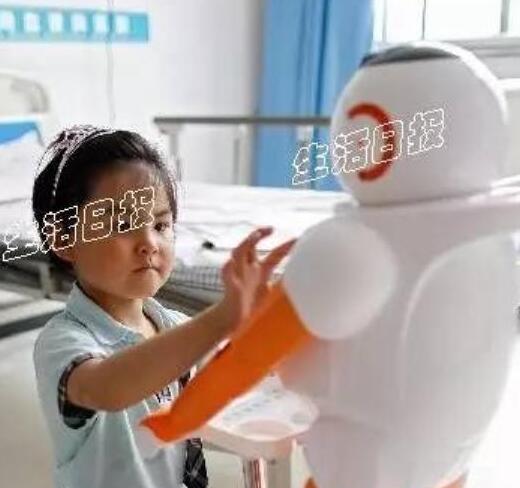 6月30日中午,记者来到该医院,庆泽正和隔壁病房的女孩玩耍,一旁的显眼位置,站立着智能机器人,黄白相间,高约半米,不时发出声响。见有人到来,庆泽礼貌性地喊“叔叔好”。